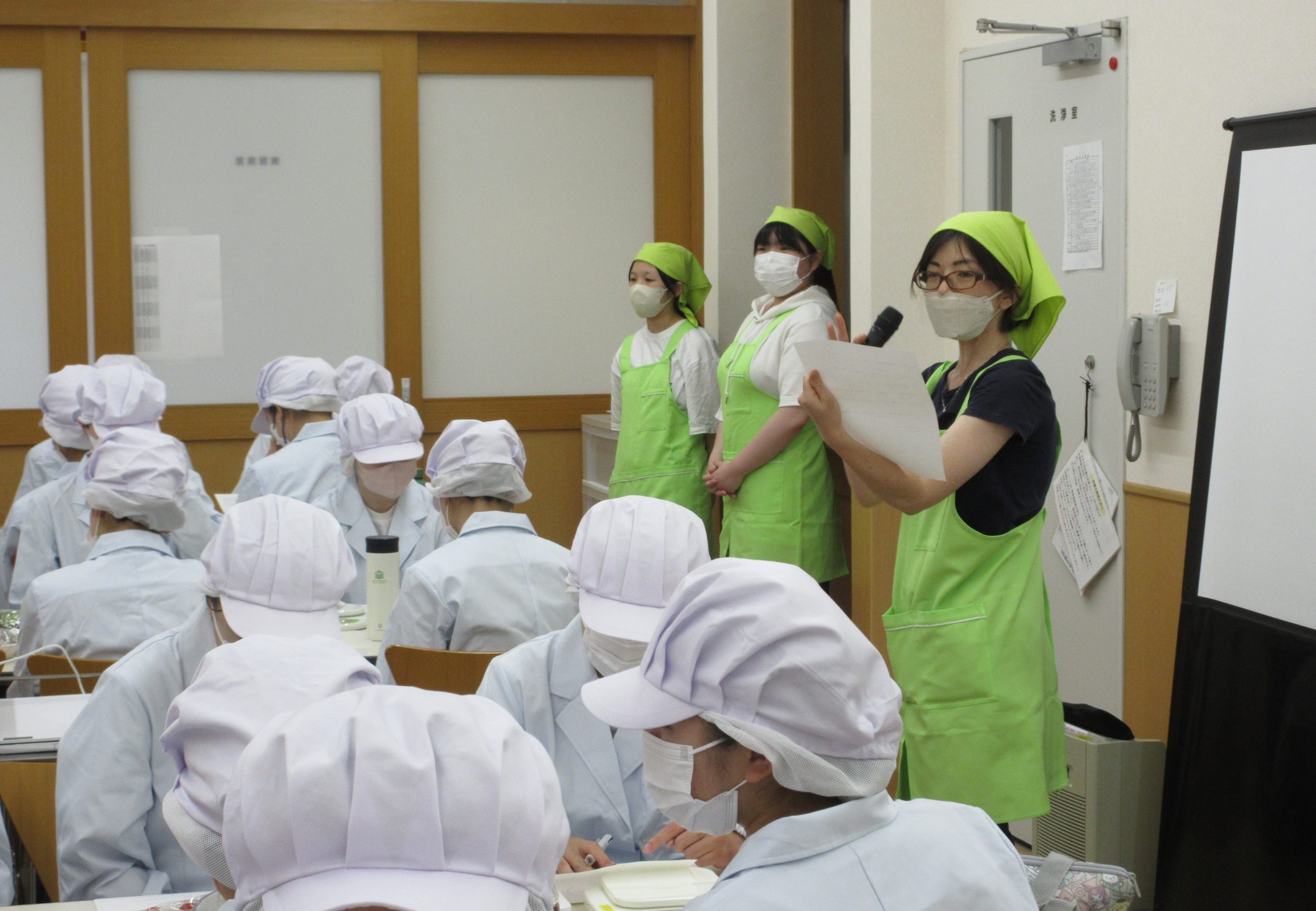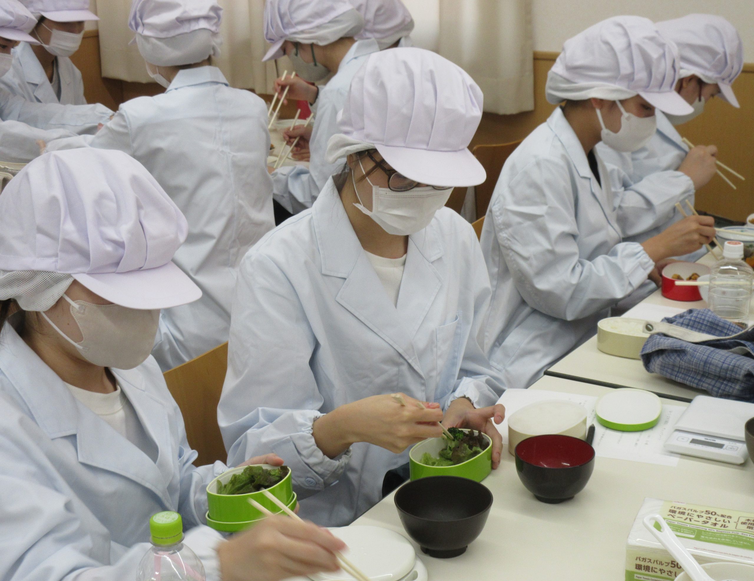学生からは「1食の適量や主菜、副菜のバランスがよくわかった」といった感想とともに、「自分が実践することで将来伝える側になったときに役立てたい」といった栄養教育者としての視点からの感想もみられ、将来、管理栄養士として活躍していくための知識・スキルを高める実り多い実習となりました。