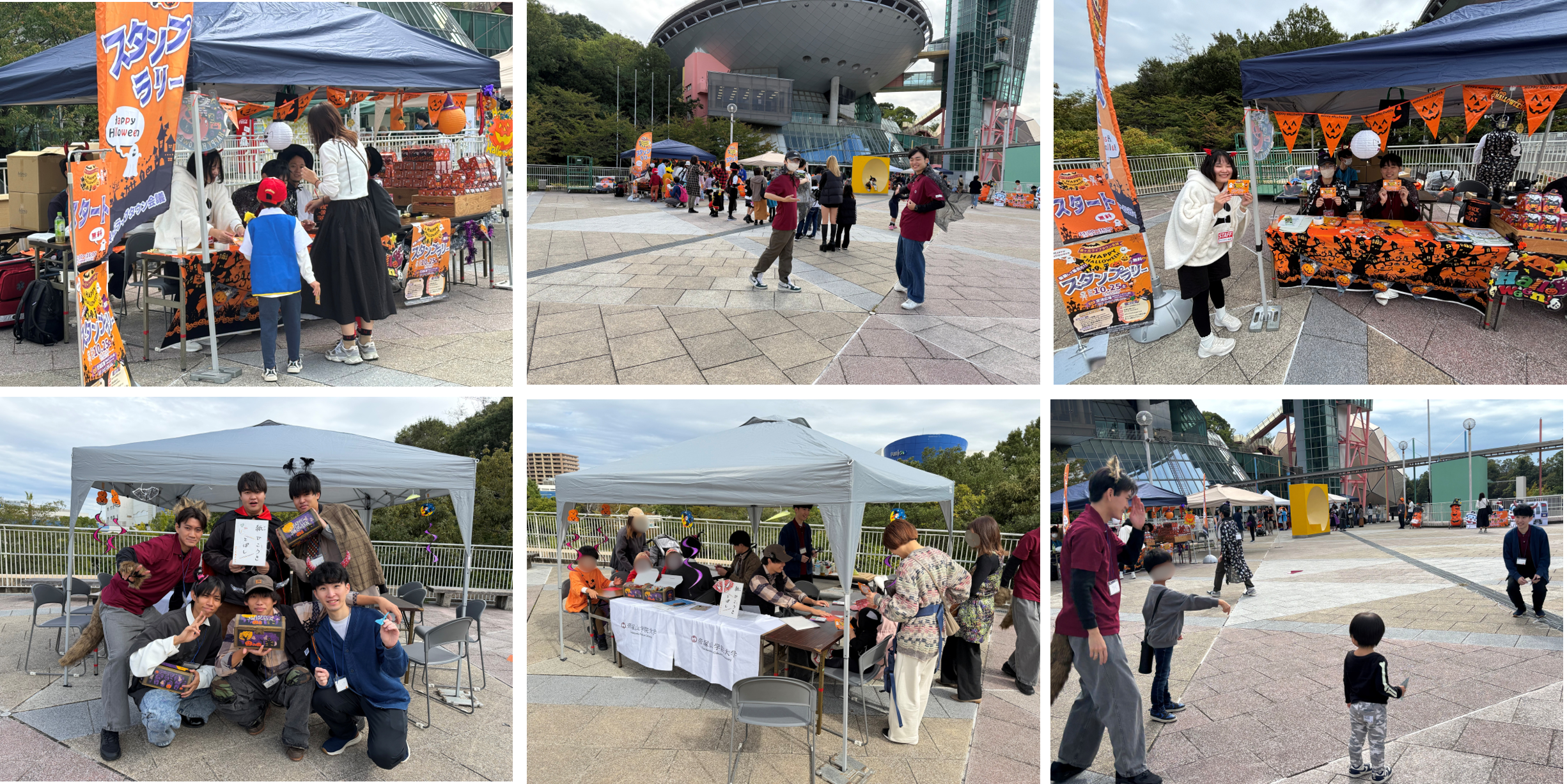 本学の学生は、本部運営とブース出展に参加。本部運営では、かわいらしい仮装をした子どもたちにスタンプラリーカードを配布し、来場者の皆さんを笑顔でお迎え。地域の方々とふれあいながら、イベント全体の運営に携わる貴重な経験を得ることができました。また、マルチスポーツサークルの学生6名は「紙飛行機とばし」のブースを出展。訪れた子どもたちと一緒に紙飛行機を折り、どこまで飛ばせるかに挑戦するなど、終始にぎやかな雰囲気の中で交流を楽しみました。