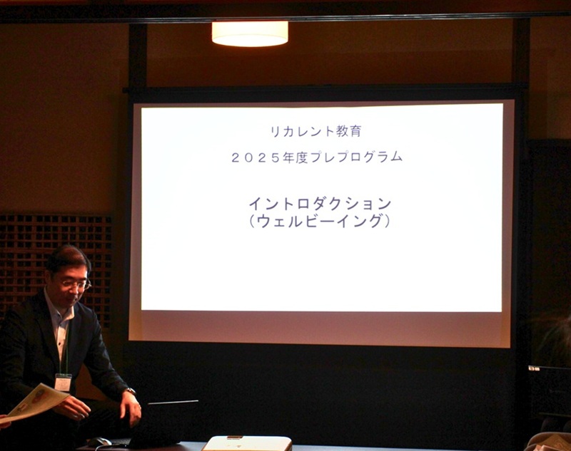 プログラム冒頭では、コーディネーターを務めるリベラルアーツ学部の大島裕市准教授より、本学にて4月に開設した「ウェルビーイング共創ハブ」の取り組みと、本学が目指すリカレント教育の方向性について紹介がありました。続いて、ウェルビーイングの概念やその歴史的変遷、社会との関わり、国内外での位置づけ、そして仕事や個人の生き方との関係について、イントロダクションが行われました。