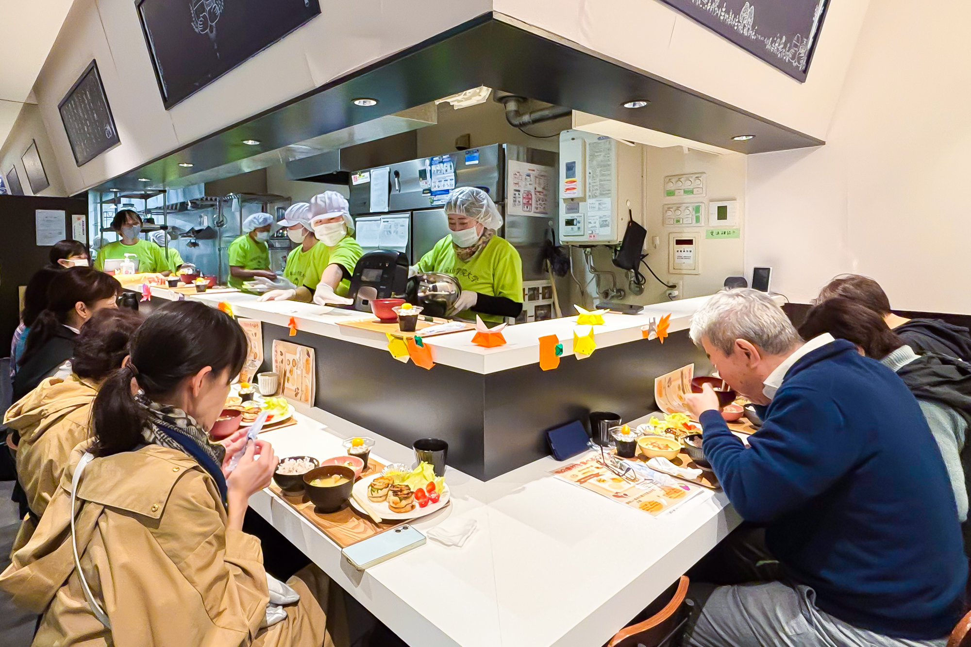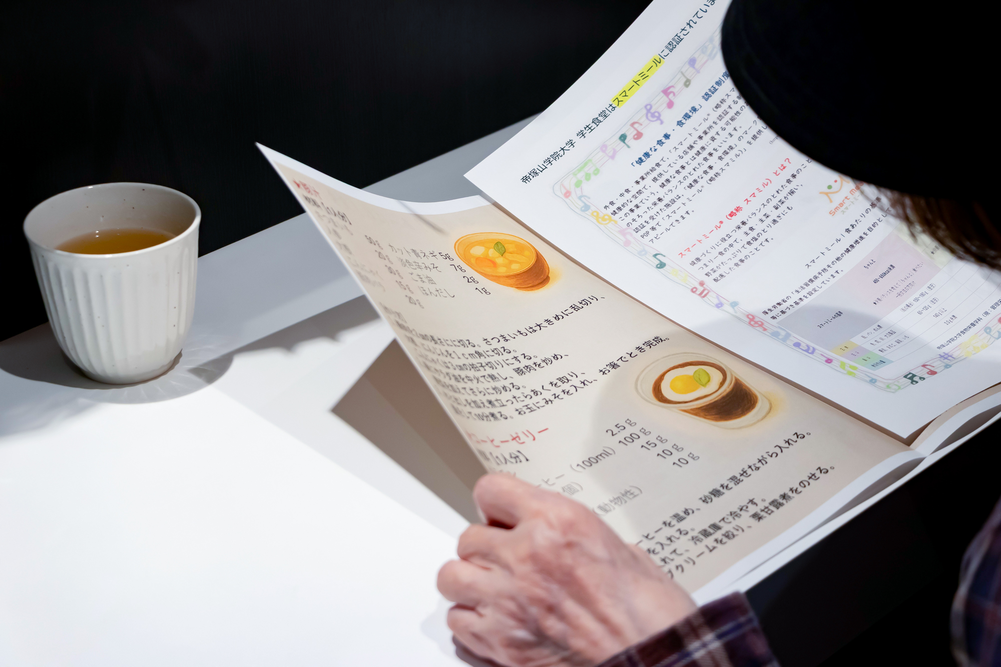店内には秋を感じさせる装飾やスマートミール(生活習慣病の予防を目的とした厚生労働省の基準などに基づき認証された食事)のポスターも掲示され、定食のレシピ集も作成し、昨年に引き続き、今年も多くのお客様から好評をいただきました。