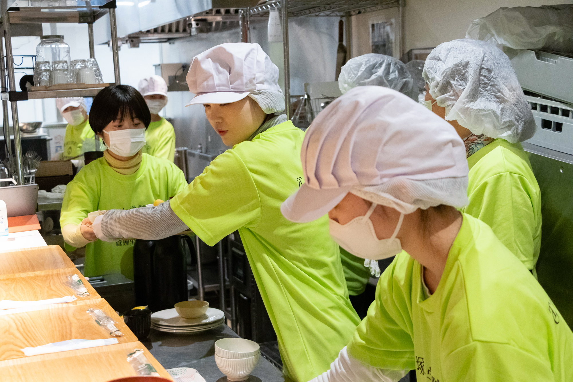 献立の栄養価計算やレシピ考案、当日の調理・接客まで、すべて学生が主体となって実施しました。