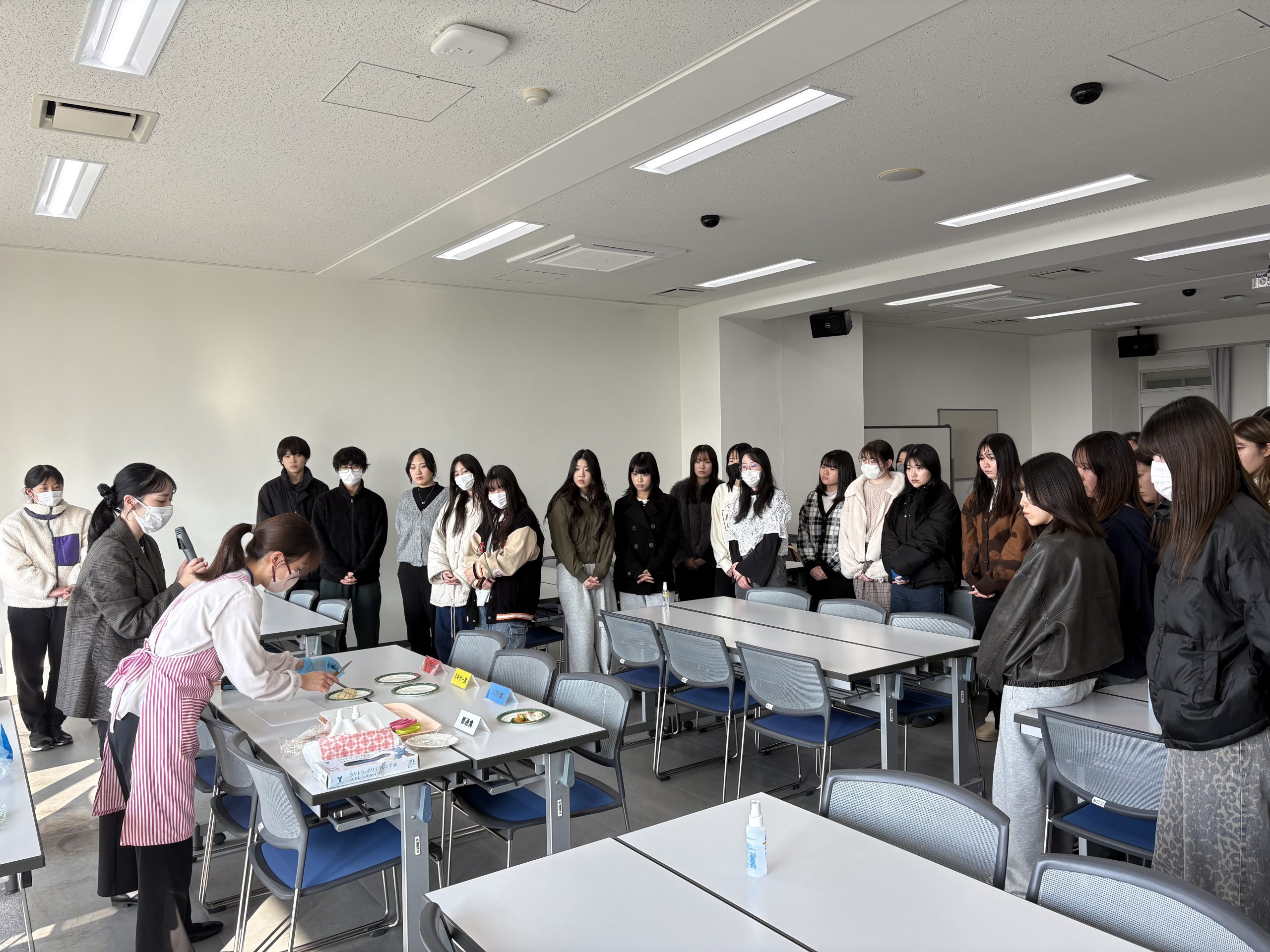 管理栄養学科3回生を対象とした「栄養アセスメント」の授業で、外部から給食業界の「ナリコマ」さまをお迎えし、介護食についての体験授業を実施しました。