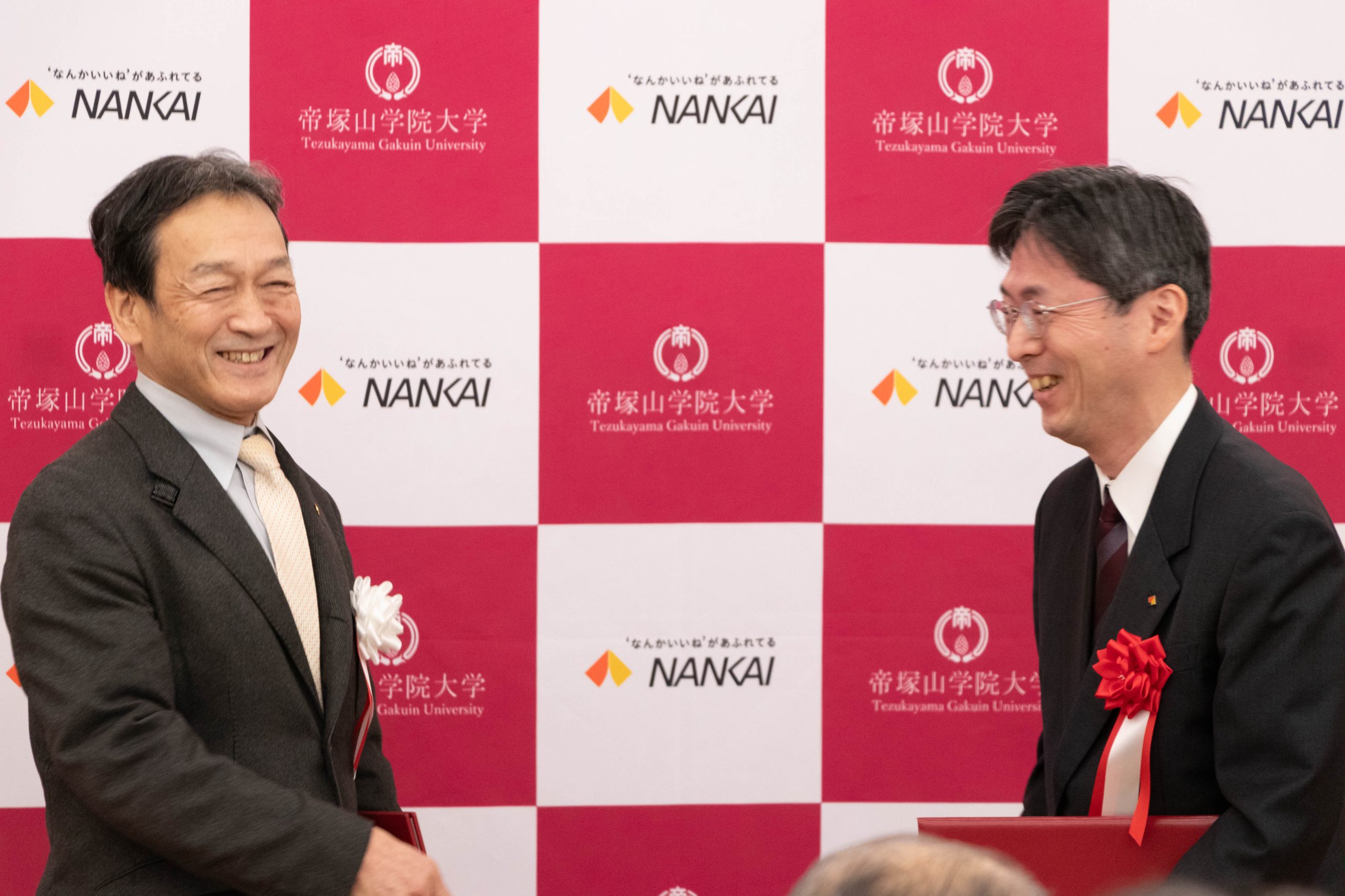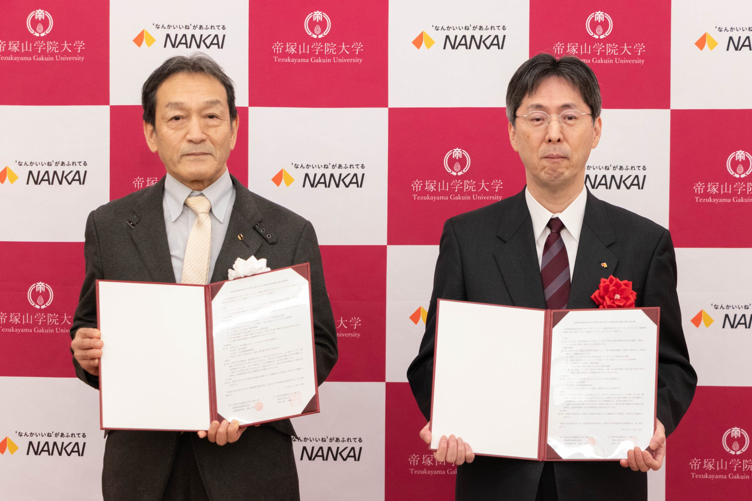 南海電気鉄道株式会社からは、岡嶋信行社長のご代理として二栢義典様が、本学からは西川禎一副学長が、それぞれ協定締結の意義について述べました。