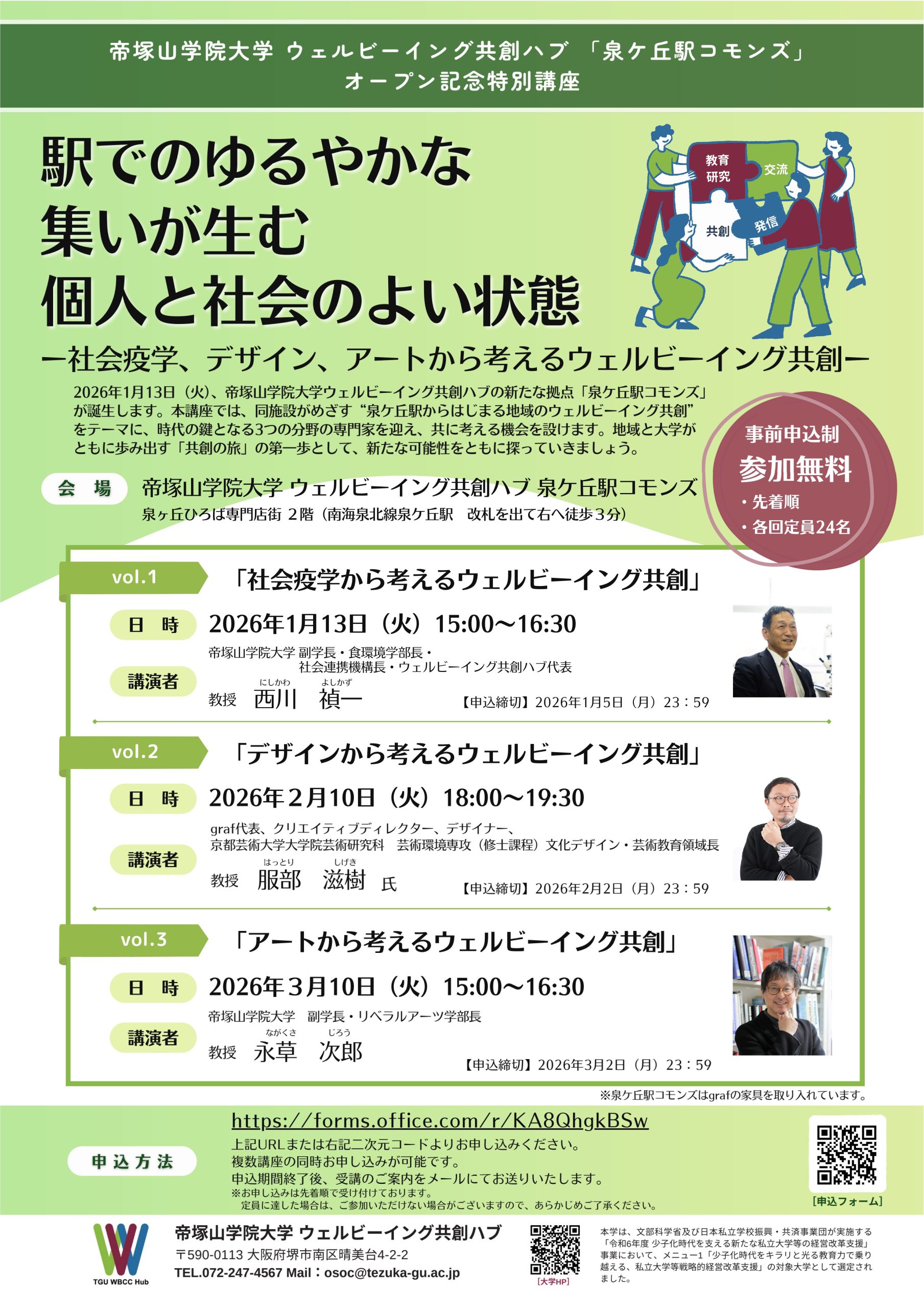 2026年1月13日(火)、本学ウェルビーイング共創ハブの学外拠点である「泉ケ丘駅コモンズ」の開設を記念し、特別講座vol.1「社会疫学から考えるウェルビーイング共創」を開催しました。