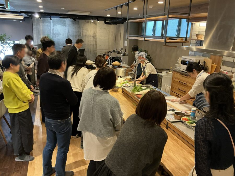 参加者は、調理の工程や食材の扱い方について学びながら、出来上がった料理を試食し、講師と交流のひとときを持ちました。
