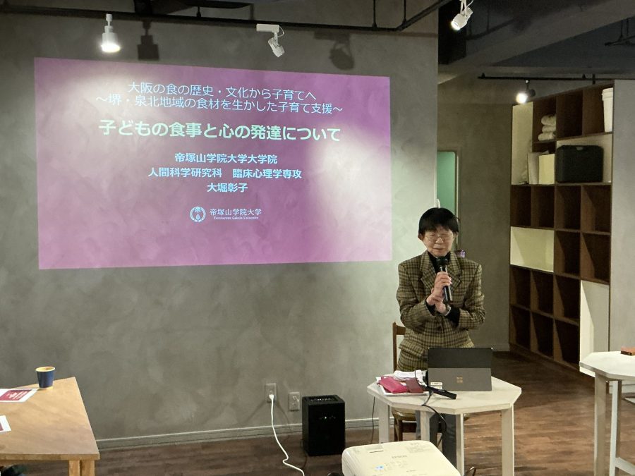 試食の後は、帝塚山学院大学大学院 人間科学研究科 大堀彰子教授による「子どもの食事と心の発達」の講演により、子どもの成長における食事の役割や、家庭や地域における食の環境が心の発達に与える影響について理解を深めました。
