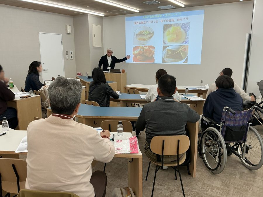 次に、一般社団法人日本食育者協会事務局の太田雅士様より「大阪の食材の歴史・文化について」をテーマに、大阪の食の歴史文化、また堺・泉北地域の食材についてご講演いただきました。参加者は、地域の食文化が持つ歴史的背景や、食材の魅力について理解を深めました。
