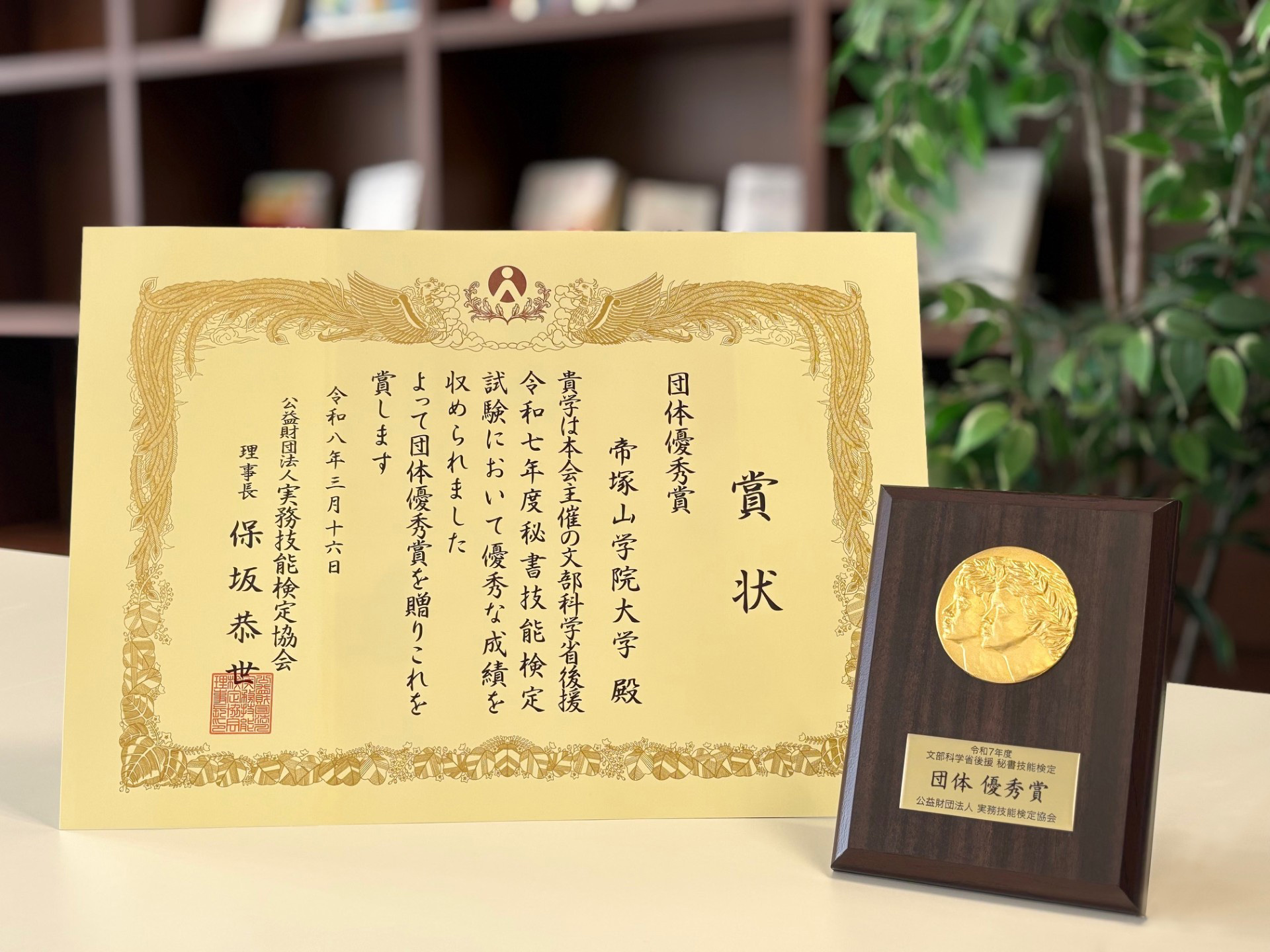 2025年度に実施された秘書検定において、2022年度より継続して「実務技能検定協会 団体優秀賞」を受賞することができました。 また、秘書検定2級・準1級では、4年間で延べ200名近くの合格者を輩出しました。 これも、皆さん一人ひとりが共通の目標に向かい、モチベーションを保ちながら努力を続けてきた成果にほかなりません。 おめでとうございます。