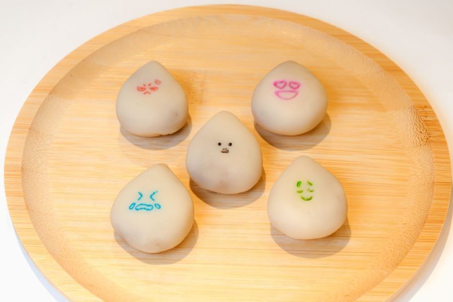 5つの表情で心をつなぐ、しずく型の練り切りです。言葉がなくても伝わる「表情」の力に着目し、見た目の楽しさと気持ちの共有を大切にした商品です。繊細な甘みの中にコーヒーの風味を感じられる一品に仕上がりました。なお、結び雫は2個で1セットとして提供しました。