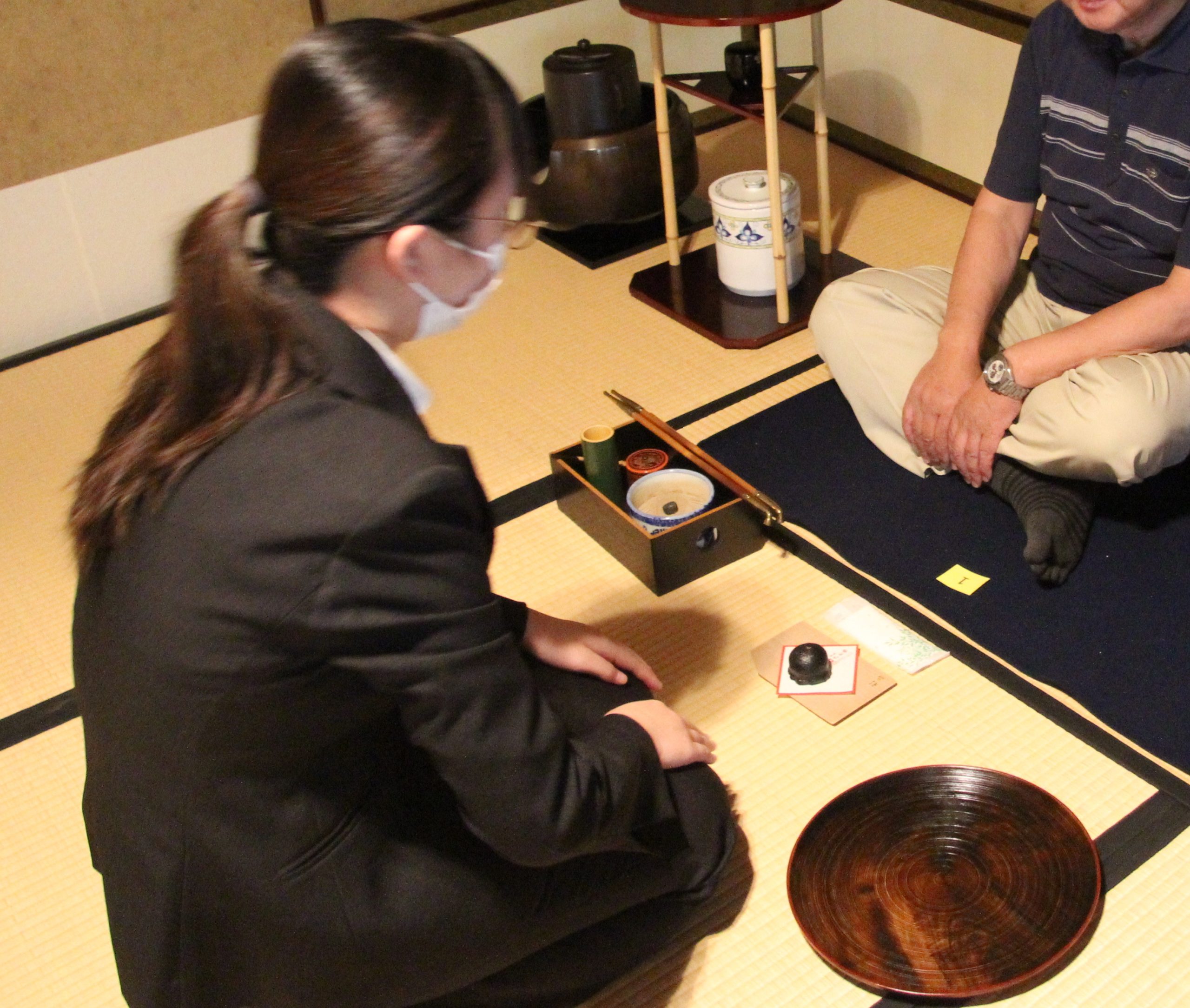 総合心理学部では、スイーツ心理学®の実践的な学びの一環として、「さかい利晶の杜」と地域活性化に取り組んでいます。第一弾として、堺・堺区エリアの3つの店舗(丸市菓子舗・菓庵さとや・宝泉菓子舗)と和菓子を共同開発し、学生たちが和菓子のデザインに挑戦。商品化され、実際に堺まつり「利休のふるさと堺大茶会」で提供されました。千利休が愛用した黒楽茶碗をイメージした薯蕷饅頭や、堺市の花木、つつじをモチーフにした最中など、地域の魅力を取り入れたことで、参加したみなさんにも喜んでいただきました。
