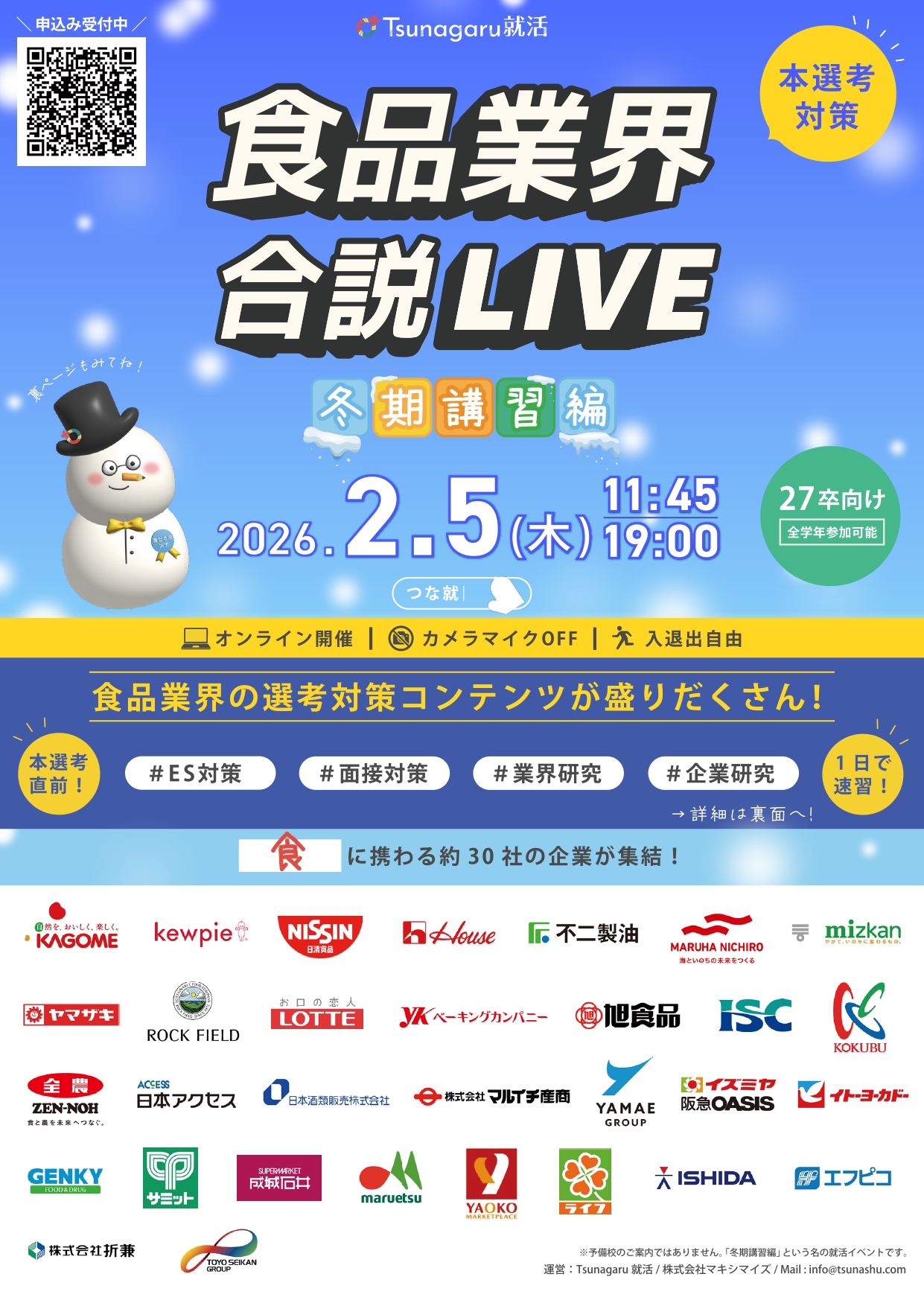 ♥27-29卒 2月5日 食品業界合説LIVE 冬期講習編
